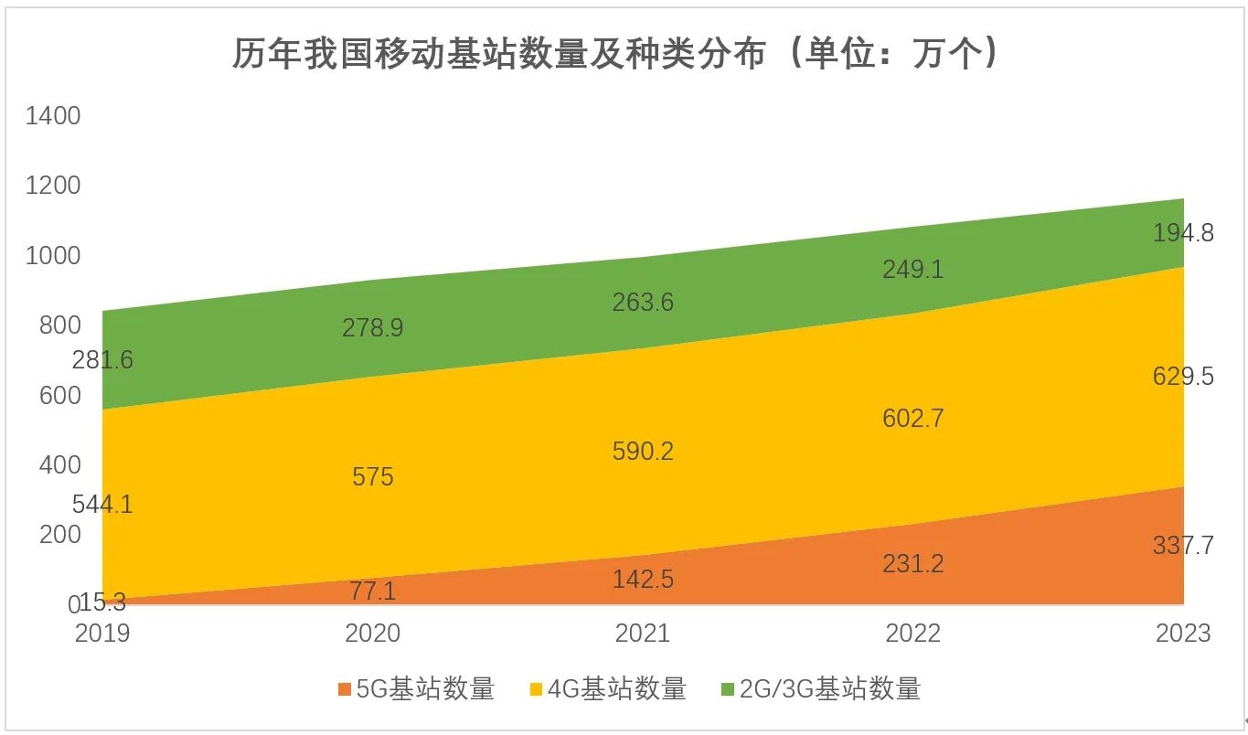 截止2024上半年,我國5G基站建設(shè)數(shù)量為391.7萬個(gè),移動(dòng)電話基站總數(shù)為1188萬個(gè),5G基站總數(shù)占移動(dòng)基站總數(shù)的33%(三分之一),較前一季度占比提高2.4個(gè)百分點(diǎn)。加快增設(shè)5G基站數(shù)量、穩(wěn)步關(guān)閉2G/3G網(wǎng)絡(luò)已成為當(dāng)下運(yùn)營商的主要工作之一。從數(shù)據(jù)看,截止2023年底,三大運(yùn)營商加起來的2G/3G基站仍然由接近200萬個(gè),但結(jié)合多項(xiàng)政策或通知來看,2G/3G基站數(shù)量將要快速減少。當(dāng)然,具體在不同運(yùn)營商、不同省市,2G/3G的退網(wǎng)進(jìn)度是不同的。