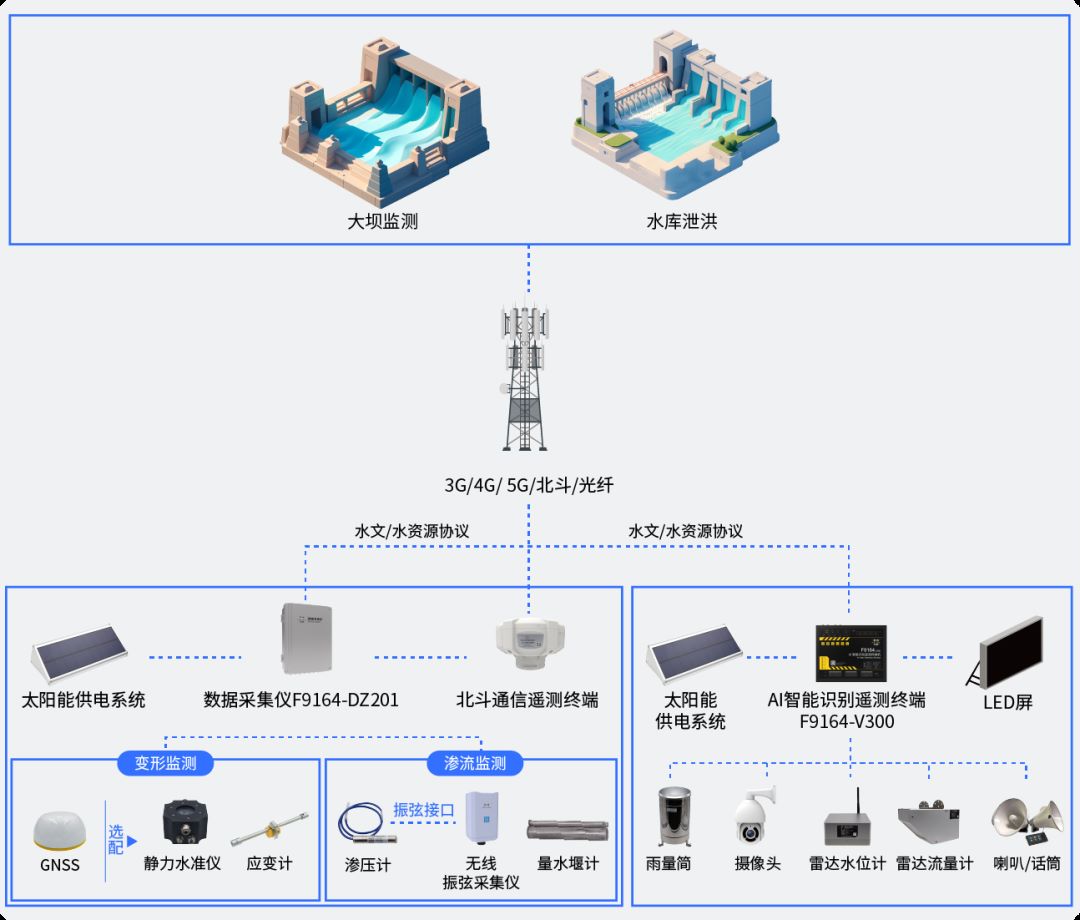 在中小流域防汛預警方面,搭建水位、降雨量防汛核心監(jiān)測,增設北斗通信技術(shù)加強應急通信保底手段,通過智能算法進行分析預測、閾值報警,強化預警響應管理,全面提升中小流域防汛應急能力。
