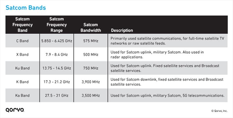 全球衛(wèi)星通信主要涵蓋L、S、C、X、Ku、Ka、Q/V等波段,許多公司并沒有專注于較低的頻率范圍,而是專注于更高頻率的Ka波段,以及V波段(40-75 GHz),為互聯(lián)網(wǎng)接入和5G等應(yīng)用提供了更多的分配頻譜。由于視頻帶寬要求的增加以及支持多載波系統(tǒng)對高線性功率的需求,在Ka等更高波段工作給射頻信號鏈電路設(shè)計帶來了新的挑戰(zhàn)。