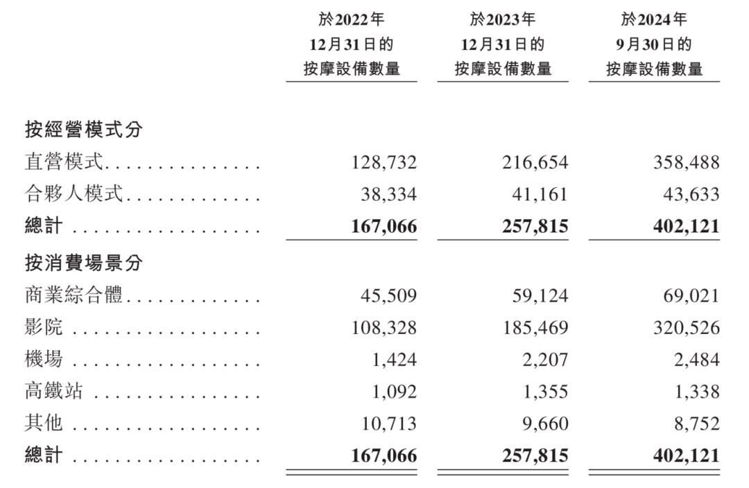 總體來說,樂摩物聯(lián)在2023年、2024年1-9月基于智能按摩服務(wù)實現(xiàn)的交易額均突破9億元。并且在完整報告期內(nèi),樂摩物聯(lián)智能按摩服務(wù)業(yè)務(wù)的毛利率分別為24.66%、41.47%、40.04%,其中2024年1-9月樂摩物聯(lián)毛利率同比下滑的原因,與擴(kuò)大設(shè)備投放、面向運(yùn)營及維護(hù)人員的支出增加有關(guān)。
