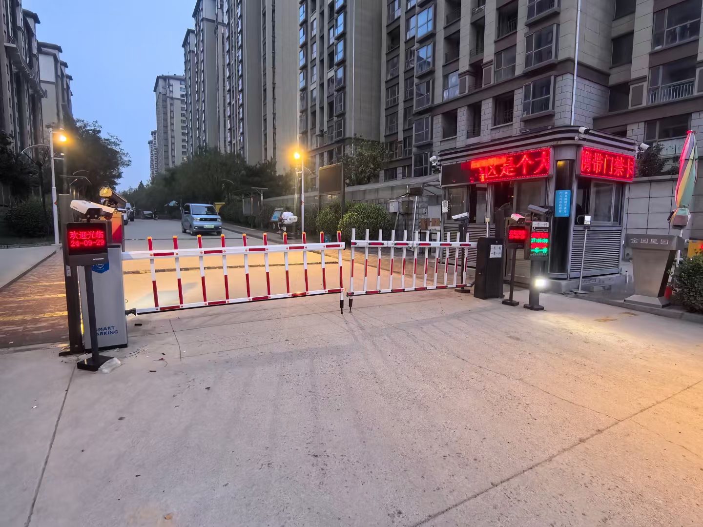 戶外停車場(chǎng)道閘和車牌識(shí)別系統(tǒng)是集機(jī)械、電子、計(jì)算機(jī)技術(shù)于一體的智能化管理系統(tǒng)。車牌識(shí)別系統(tǒng)通過高清攝像頭采集車輛圖像,利用先進(jìn)的圖像識(shí)別算法,對(duì)車牌號(hào)碼、顏色等信息進(jìn)行自動(dòng)識(shí)別。當(dāng)車輛駛?cè)胪\噲?chǎng)入口時(shí),攝像頭迅速捕捉車牌圖像,系統(tǒng)在毫秒級(jí)時(shí)間內(nèi)完成車牌識(shí)別,并將識(shí)別結(jié)果與數(shù)據(jù)庫(kù)中的信息進(jìn)行比對(duì),判斷車輛的權(quán)限,如是否為固定用戶、臨時(shí)用戶等。