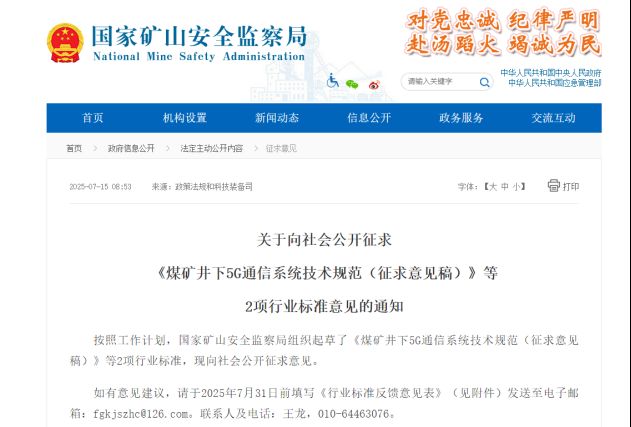 7月15日,國家礦山安全監(jiān)察局組織起草了《煤礦井下5G通信系統(tǒng)技術(shù)規(guī)范(征求意見稿)》《金屬非金屬地下礦山5G通信系統(tǒng)技術(shù)規(guī)范(征求意見稿)》2項(xiàng)行業(yè)標(biāo)準(zhǔn),并向社會(huì)公開征求意見。