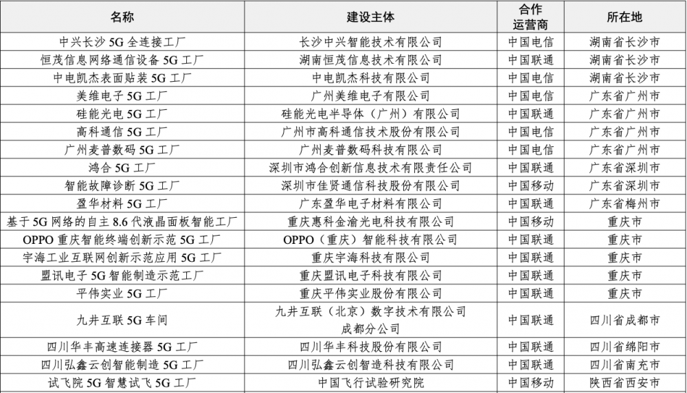 電氣機(jī)械和器材制造業(yè)也有多家通信企業(yè)的5G工廠: