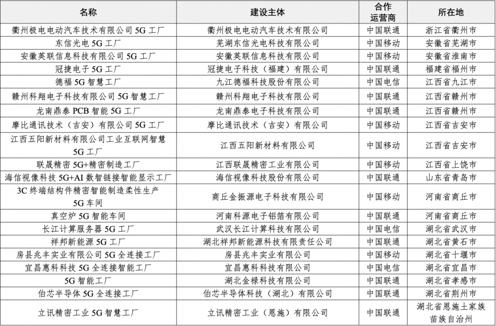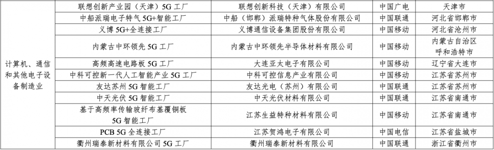 其中,計算機(jī)、通信和其他電子設(shè)備制造業(yè)的入選5G工廠包括: